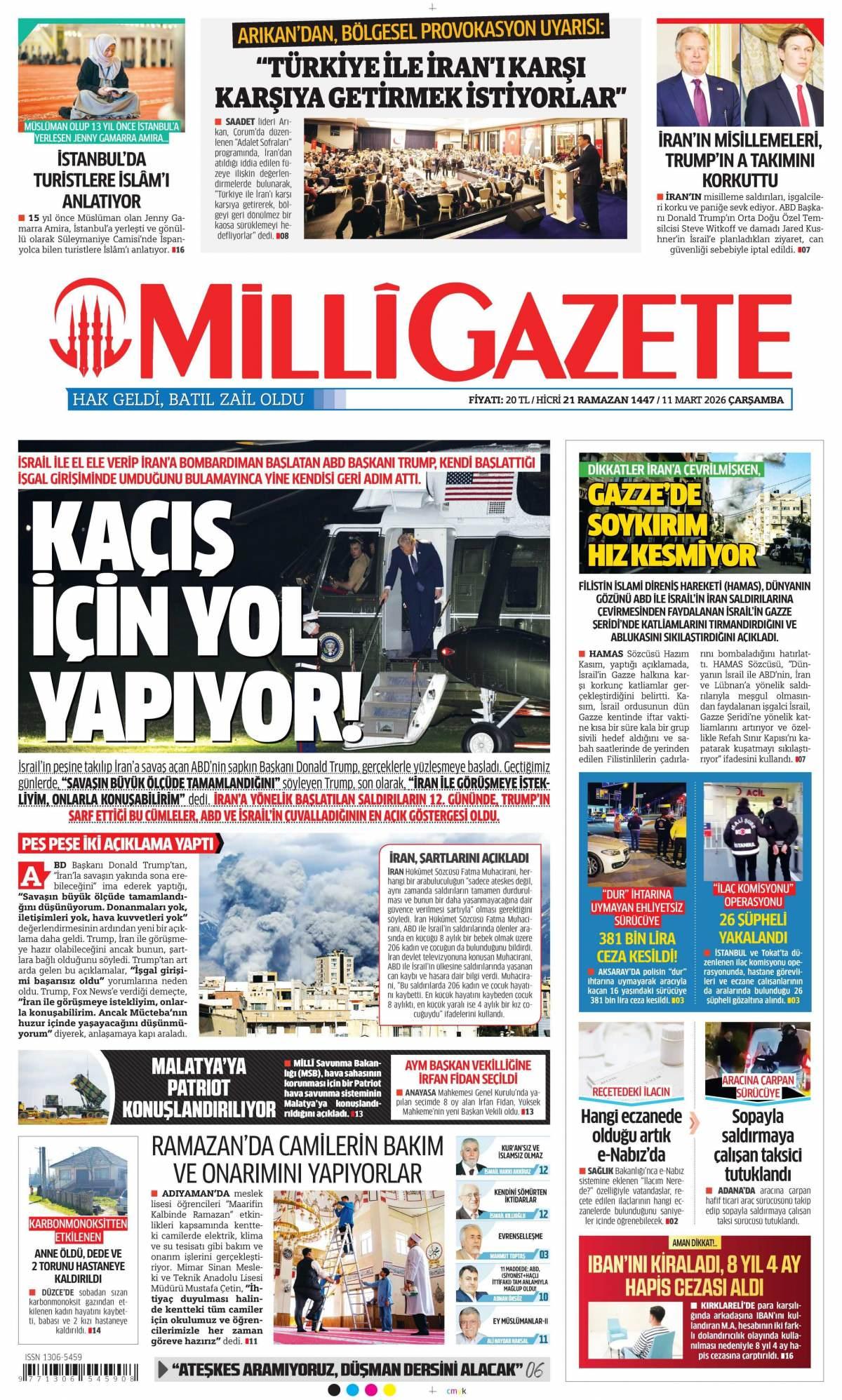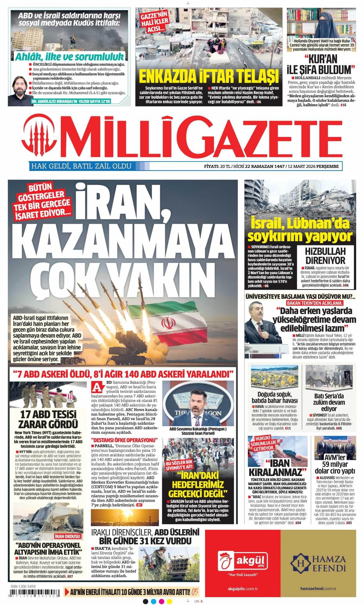 Milli Gazetesi 12 Mart 2026, Perşembe Günü Gazete Manşetleri